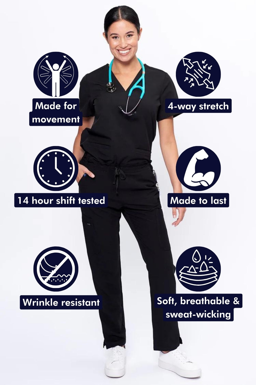 "The comfiest 4-way stretch scrubs I’ve ever worn!" Sehrish K.